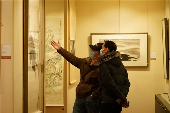 荣宝斋常务副总经理、北京荣宝拍卖有限公司董事长兼总经理范存刚陪客人参观预展现场