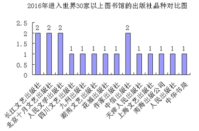 图1 2016年进入世界30家以上图书馆的出版社品种对比图