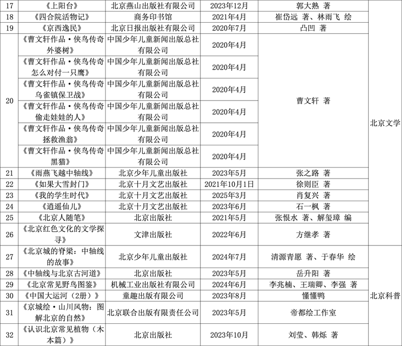 附件:2025阅读北京,京彩书香——“书香京华”数字阅读平台主题推荐书目结果(排名不分先后)