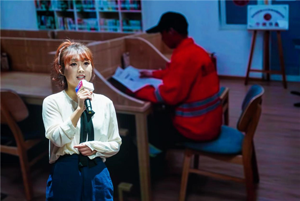 ▲东城区安定门街道花园社区代表讲述“书香社区”建设背后的故事