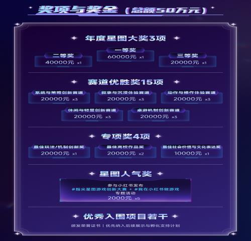 为助力参赛作品传播,大赛与小红书展开深度合作,开设站内专属流量曝光通道。参赛团队需在小红书发布带双话题“#指尖星图游戏创新大赛”“#我在小红书做游戏”的宣传内容,初赛阶段还需提交不少于30秒的宣传视频和不少于15分钟的实机/实况视频,通过审核的作品将获流量扶持券,入围及获奖作品更将获重点推荐,总曝光度可达251万+。