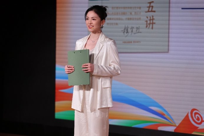 中国歌剧舞剧院青年舞蹈家唐诗逸演绎了《中国文化十五讲》中关于儒家文化与人文艺术的论述,她将多年舞台深耕的实践积淀与内心感悟相融合,让观众在文字与艺术的交融中感受中华文化的永恒魅力。