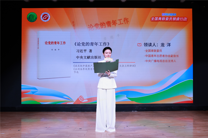 龙洋领读了习近平总书记《论党的青年工作》中的篇章,以其端庄大气的台风和富有感染力的声音,带领青年重温领袖对当代青年的殷切期望与谆谆教导,深刻领悟新时代中国青年的使命担当。
