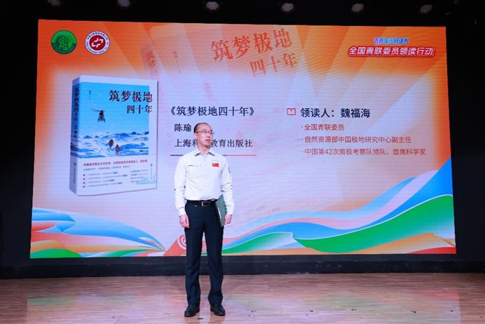 自然资源部中国极地研究中心副主任、中国第42次南极考察队领队、首席科学家魏福海结合其数十年的极地科考经历,领读了《筑梦极地四十年》中的片段,将一代代极地工作者不畏艰险、勇于探索、献身科学的崇高精神娓娓道来,激发青年科技报国的壮志豪情。
