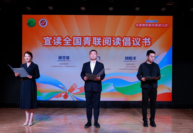 全国青联委员薛芬菲、杨飞、胡睦洋三位代表共同宣读了《全国青联阅读倡议书》,号召全国广大青年将阅读作为终身习惯,在书香中汲取前进力量,在阅读中明确人生方向,争做中华民族现代文明的建设者、传承者和弘扬者。