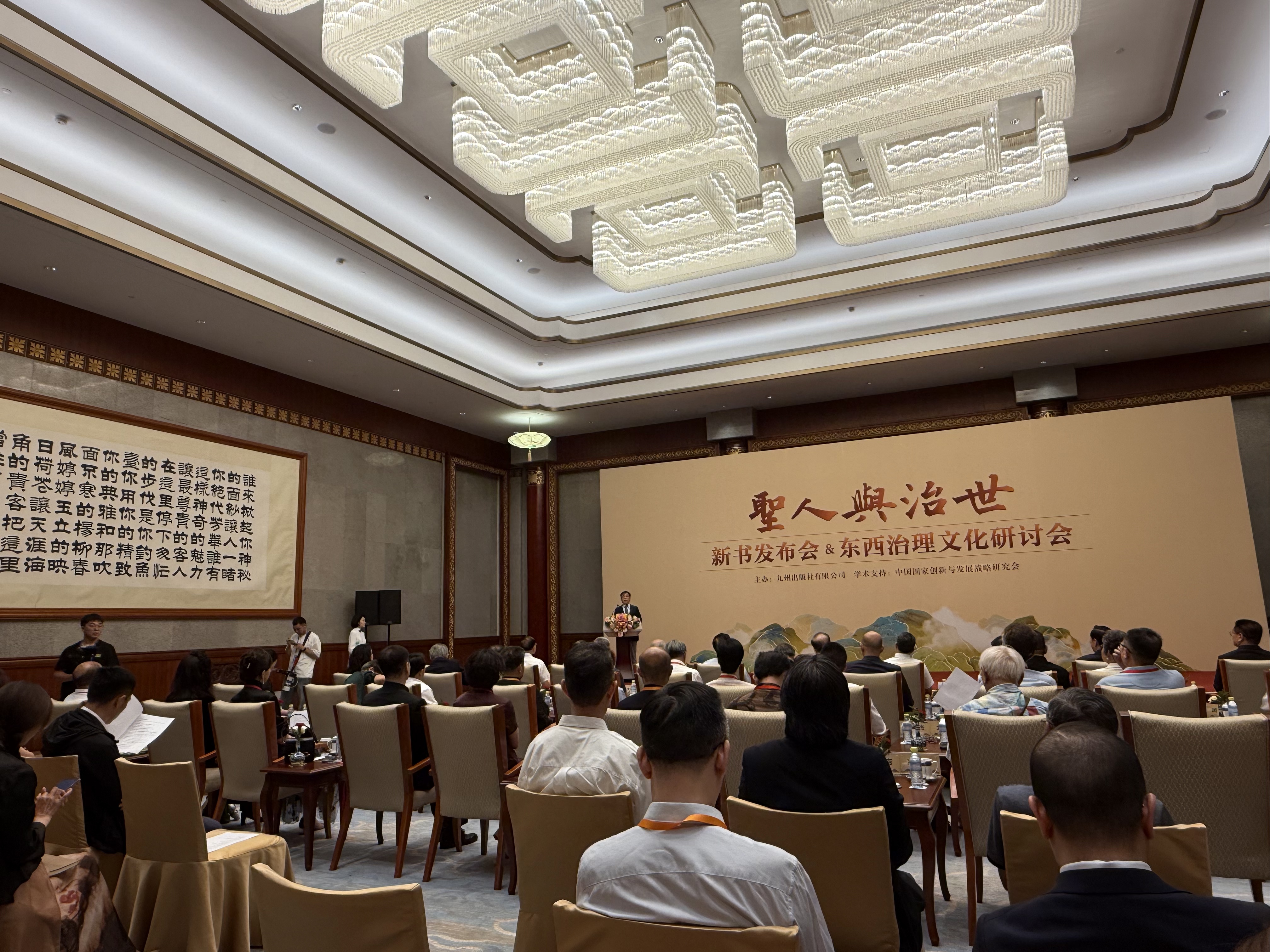 中国出版传媒商报讯 7月5日,文化学者王静云、傅说天策会主席傅宝联新书《圣人与治世》发布会暨东西治理文化研讨会在京举行。这场由九州出版社主办、中国国家创新与发展战略研究会提供学术支持的发布会,以“人类命运共同体背景下的东西治理文化研讨”为主题,汇聚了来自文化、历史、哲学、外交及出版界的数十位专家学者,共同就如何从东方五千年治理智慧中汲取养分,应对当今全球治理挑战等议题展开深入交流。