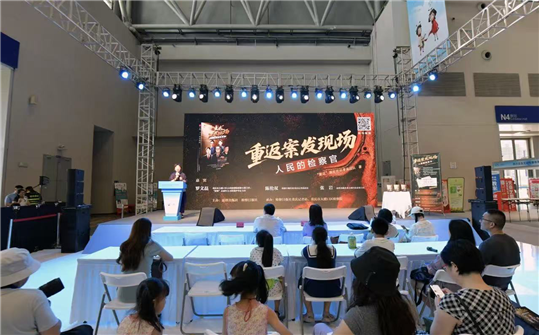 7月27日,由法律出版社、检察日报联合主办,检察日报社重庆记者站、重庆市大渡口区检察院联合承办的《读懂英模——检察英模带您“重返案发现场”》阅读分享活动亮相第33届全国书博会。重庆市大渡口区人民检察院检察五部主任、“莎姐”未成年人司法保护中心主任罗文磊,检察日报社驻重庆记者站站长陈伦双,法律出版社重大项目办公室主任张岩等多位嘉宾与观众交流互动,通过观看视频、互动问答等形式,让现场读者尤其是青少年感受法治的温暖与力量。