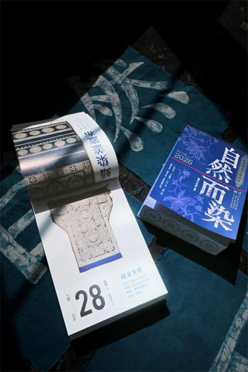 纹样背后,跃动着不同族群的灵魂印记:绕家的稚拙灵动、白领苗的奔放奇逸……中国蜡染,纹随族异,魂脉相通。创作者视其为有灵的生命体,无论赠予或售出,必留下布丝或剪角为“信”,守护其“魂”。《自然而染·2026》日历,正是打破时空藩篱,让这365份古老的 “生命印记” 在现代案头重新呼吸,向世界诉说跨越千年的温度与故事,展现其在世界艺术之林中的独特东方神韵。