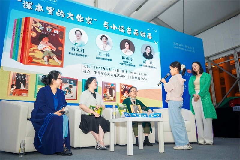 8月16日,2025上海书展现场,北京理工大学出版社“课本里的大作家”暑期系列活动正式启动。本次活动以“笔墨童心·课本寻踪:跟随儿童文学大作家开启阅读之旅”为主题,特邀著名儿童文学作家秦文君(《一诺千金》作者)、王一梅(《书本里的蚂蚁》作者),以及资深出版策划人、阅读推广人陈彦玲,与现场小读者展开深度互动,共启一段书香氤氲的童趣文学之旅。活动由北京理工大学出版社营销策划人赵一琪主持。