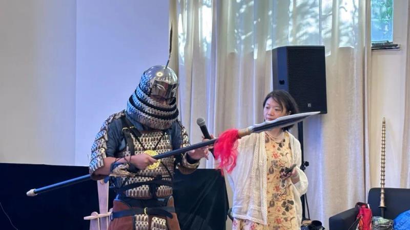 在活动现场,大司马身着甲胄与读者互动,现场演绎了秦汉以来一直流传的“席地而坐”,并为读者们展示了其中的玄机:支踵。同时,大司马也为读者们展示了隋朝第一骑兵武器马槊,让读者们身临其境地感受了胡汉融合带来的变化。