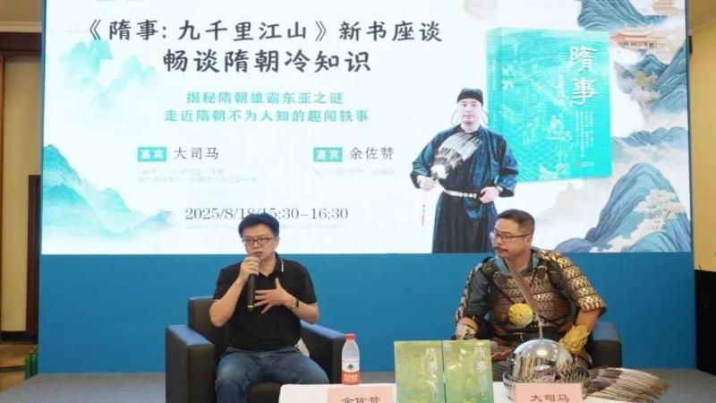 2025年8月18日,《隋事:九千里江山》新书座谈会在上海展览中心第三活动区举行。本书作者大司马,华文出版社社长、总编辑余佐赞出席本次活动。