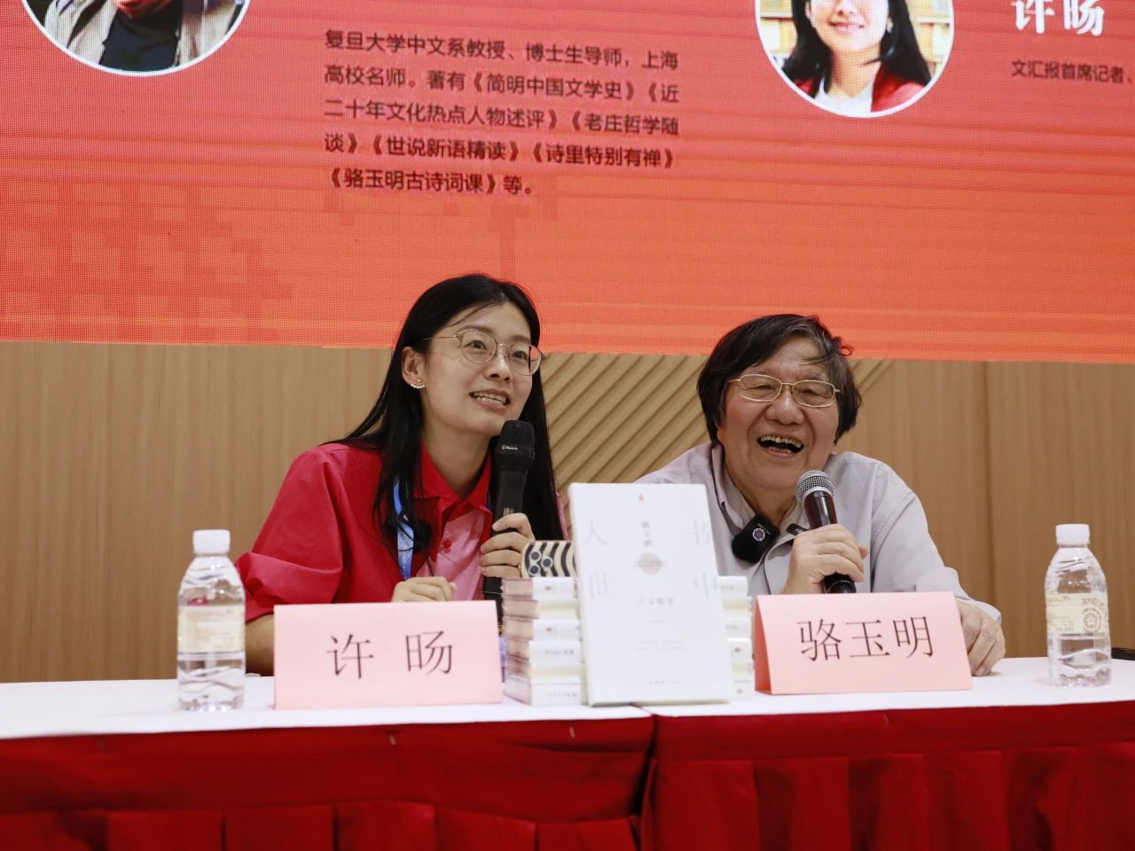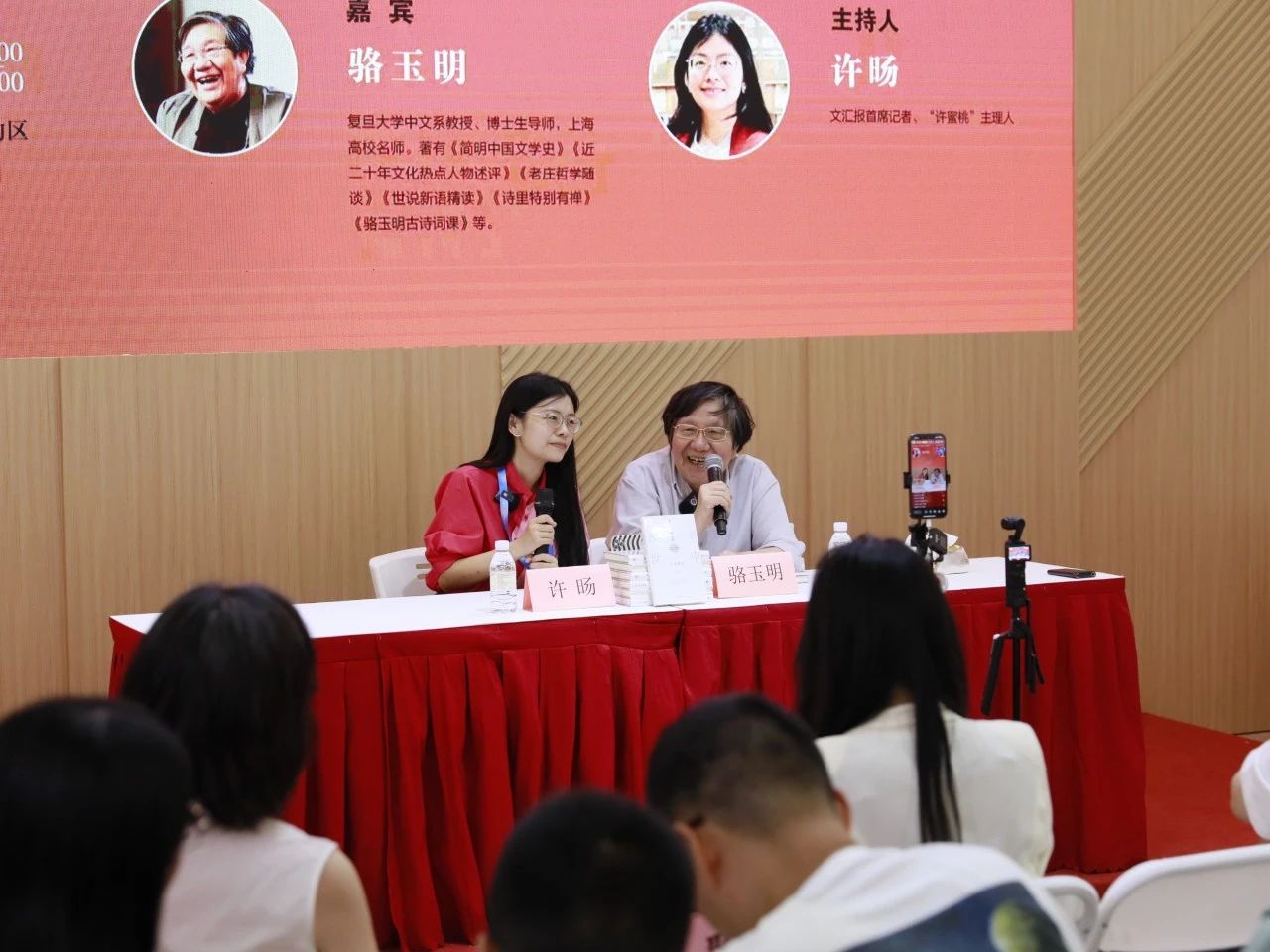 《书中人世:骆玉明人文随笔》作者,复旦大学中文系教授、博士生导师,上海高校名师骆玉明(右)与文汇报首席记者、“许蜜桃”主理人许旸(左)展开对谈