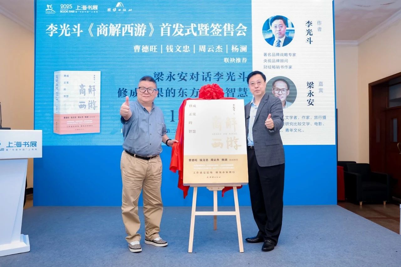 8月18日,“修成正果的东方商业智慧——《商解西游》首发式暨签售会”在上海书展现场举办。《商解西游》作者,著名品牌战略专家、央视品牌顾问、财经畅销书作家李光斗与复旦大学教授、人文学者、作家梁永安展开对谈。