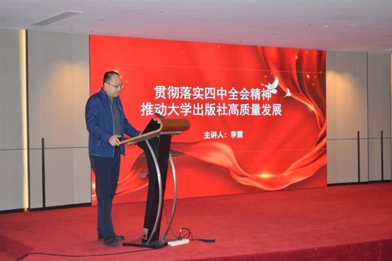 在主题报告阶段,刘岩以“关于推动党建和业务工作深度融合的思考”为题,结合多年党建工作经验,从提高政治站位、认识融合重大意义,坚持问题导向、正视短板弱项,坚持系统施策、推动深度融合三个维度,深入阐释了党建与业务融合的核心逻辑与实践路径。在谈到党建与业务工作深度融合的具体举措时,他提出“五个强化”与“五个一体化”:一是强化同向发力,推动工作目标一体化;二是强化教育培训,推动干部队伍一体化;三是强化制度建设,推动齐抓共管一体化;四是强化日常监督,推动考核评议一体化;五是强化以上率下,推动工作责任一体化。报告为大学出版社党建工作提供了重要指导。