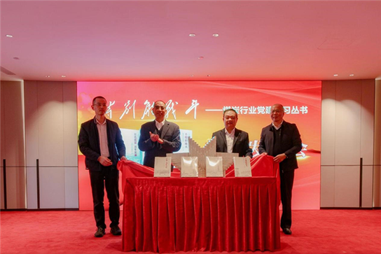 致辞环节结束后,与会人员共同观看了中国矿业大学出版社建社40周年宣传片,全面回顾了矿大社在党建引领下取得的成就,生动展现了其在能源科技出版领域的奋斗历程和对教育事业的贡献。随后,中国矿业大学资产经营公司副总经理、出版社党总支书记、总经理李士峰向与会领导和嘉宾介绍了《特别能战斗——煤炭行业党建学习丛书》。该《丛书》是为纪念毛泽东主席提出煤矿工人“特别能战斗”精神100周年,由中国煤炭职工思想政治工作研究会与中国矿业大学出版社联合策划出版的。《丛书》不仅是对百年精神的回望与致敬,更是响应党中央关于党史学习教育要求的生动实践,填补了煤炭行业跨企业、成系列党建学习读物的空白。在热烈的掌声中, 刘岩、李强、刘海泉、高强四位领导共同为《丛书》揭幕,激励矿大社在未来的出版工作中继续发挥党建优势,为推动煤炭行业高质量发展贡献更多力量。