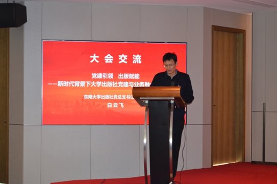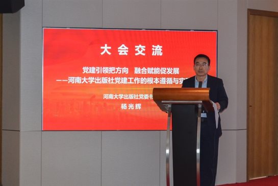 在大会交流阶段,清华大学出版社党委书记、董事长邱显清,西安交通大学党委宣传部副部长、出版社党委书记、董事长、社长李重,东南大学出版社党总支书记、社长白云飞,重庆大学出版社副总编辑马宁,辽宁师范大学出版社党总支书记、社长兼总编王星,河南大学出版社党委书记杨光辉,中国矿业大学资产经营公司党委书记、董事长,出版社董事长、社长曹巍先后发言,分享了各自出版社在党建引领出版高质量发展、党建与业务融合实践、出版社治理创新等方面的典型做法和宝贵经验。发言内容务实、亮点突出,引发与会代表广泛共鸣。