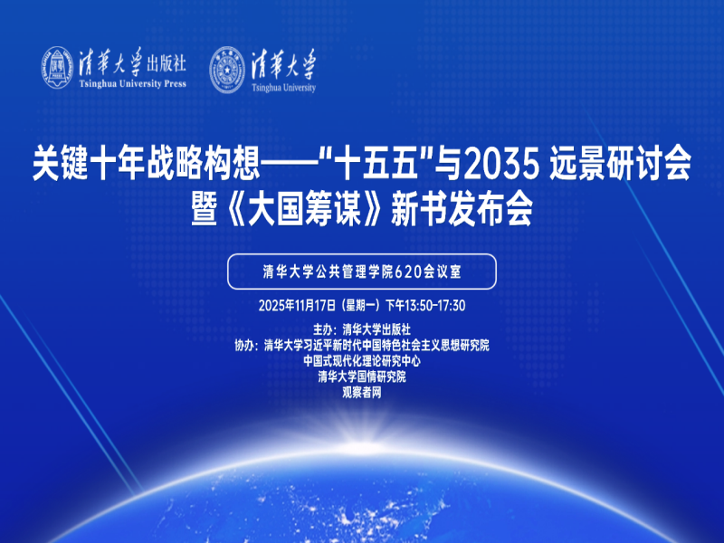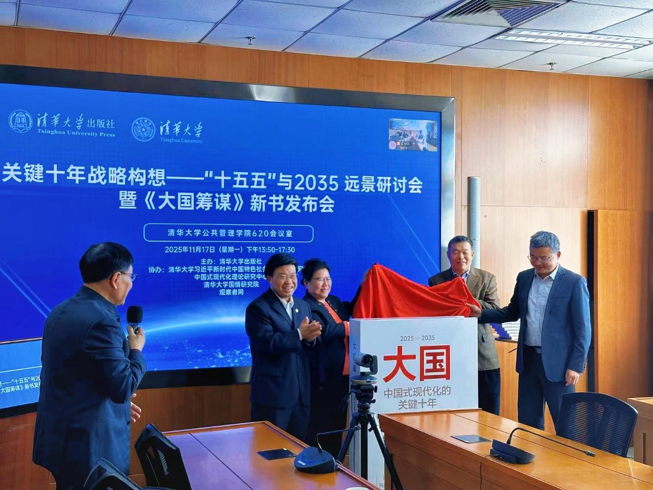 近日,关键十年战略构想——“十五五”与2035远景研讨会暨《大国筹谋》新书发布会在清华大学公共管理学院620会议室成功举办,也同步在腾讯会议线上进行。本次研讨会由清华大学出版社主办,清华大学习近平新时代中国特色社会主义思想研究院中国式现代化理论研究中心、清华大学国情研究院、观察者网协办,通过清华大学出版社官方(视频号、抖音)、清华大学官方(视频号、抖音、快手账、微博、哔哩哔哩)、长安街读书会官方视频号及光明网平台面向社会进行现场直播。会议聚焦"十四五"规划收官与"十五五"规划谋局的关键历史节点,吸引了来自党政机关、科研院所、高校及媒体机构的近百位代表参会,共同为中国式现代化关键十年的战略路径建言献策。会议由复旦大学中国研究院研究员、观察者网总经理李波主持。