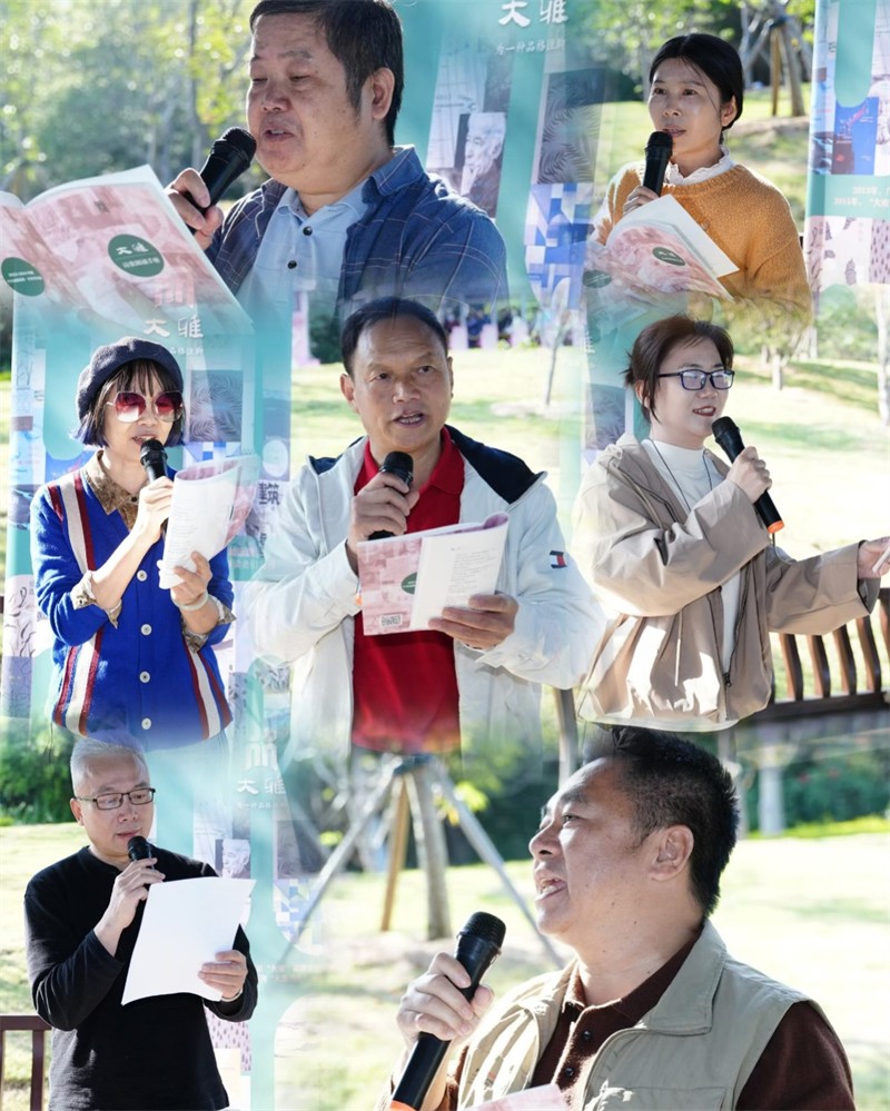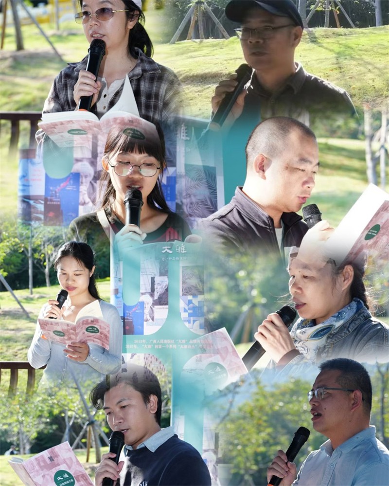 2025年11月24日至25日,第九届广西花山诗会在南宁举办。花山诗会是广西文联、广西作协倾力打造的示范性文艺品牌,亦是广西规格最高的年度诗歌盛会。本届花山诗会,来自区内外共计七十多名作家、诗人、评论家相聚南宁,漫谈诗话、诵读诗歌、共度清秋。11月25日下午,作为第九届花山诗会系列活动最后一个环节,在山清水秀的南宁青秀山樱花园朱雀廊,广西人民出版社“大雅”品牌举办了“‘大雅’之诗南国清秋展”,进行了“大雅”诗歌经典诵读、交流,当诗人与山水、诗书相遇,诗意融融,无限美好。