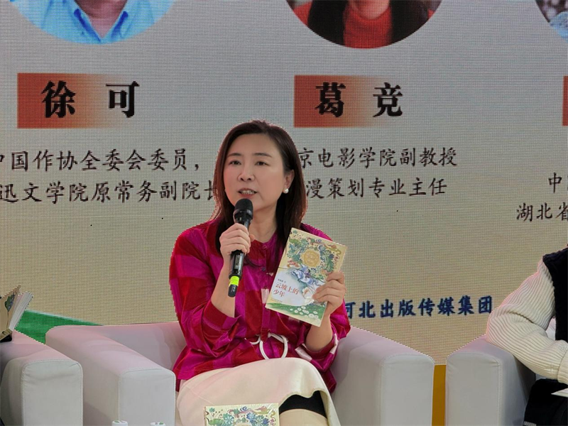 随后的嘉宾访谈环节,由河北少年儿童出版社副总编辑翁永良主持,三位嘉宾围绕作品创作、评价及儿童文学创作相关问题展开分享与讨论。邹超颖谈到,这本书的创作灵感来源于在恩施度过的一个夏天,行驶在盘山公路上时,看到山坡上的一个小木屋,引发创作想象。之后,她深入土家族村寨,与孩子们朝夕相处,体察他们的生活,将审美、想象与现实融合,创作了这部小说。