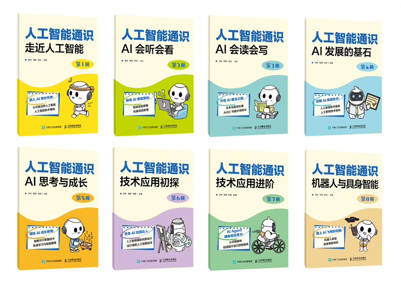 本次发布的中小学人工智能通识课程,严格依据教育部《中小学人工智能通识教育指南(2025年版)》研发,覆盖小学1至8年级,共设8册配套图书。课程由工信学堂教研团队联合北京师范大学专家团队共同打造,北京航空航天大学、首都师范大学、南京邮电大学等知名高校专家团队深度参与,融合信息化课程开发模式、敏捷课程开发模型及用户体验五要素,确保课程兼具专业性、系统性与可操作性。