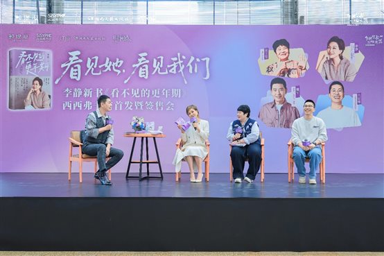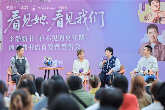中国出版传媒商报讯 3月14日下午,北京颐堤港化作一片温暖的紫色海洋。由湖南文艺出版社出版的李静新书《看不见的更年期》首发暨签售会在此举行。知名主持人戴军以老友身份担任主持,与作者李静、脱口秀演员房主任、女性健康科普博主六层楼一起,围绕“看见她,看见我们”的主题,完成了从“我”到“我们”的连接。在这场以真实为底色的对话中,三位嘉宾从各自的生命经验出发,让一个长久以来被沉默包裹的话题,终于有了被坦诚相待的时刻。