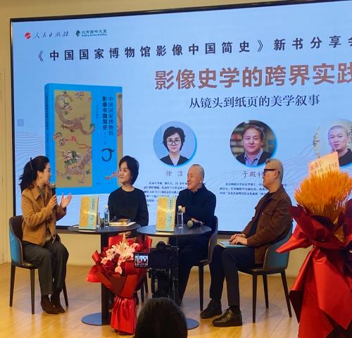 中国出版传媒商报讯 3月21日下午,由人民出版社出版的《中国国家博物馆影像中国简史》(古代·珍藏版)新书分享会在北京图书大厦一层共享空间举行。该书作者、纪录片导演徐洁,与商务印书馆原总经理于殿利、中国国际书画艺术研究会理事赵镭展开深度对谈,从影像与文字的跨界视角,带领读者走进一座“纸上国博”。活动由该书责任编辑主持。