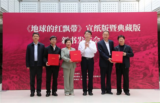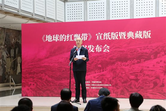 中国出版传媒商报讯 4月18日下午,中国作家协会主办,作家出版社、河南省文化产业投资有限责任公司承办的《地球的红飘带》宣纸典藏版和宣纸版新书发布会在中国现代文学馆举行。中国作家协会党组成员、副主席、书记处书记吴义勤,国家文物局革命文物司司长彭跃辉,中国现代文学馆常务副馆长王军;著名画家、本书绘画作者沈尧伊,著名作家魏巍儿媳王曼曼,刘亚楼将军女儿刘煜鸿,于都中央红军长征集结出发历史博物馆党组成员钟敏,古田会议纪念馆办公室主任江敏,瑞金中央革命根据地纪念馆研究员刘洪,以及河南省文化旅游投资集团有限公司党委书记、董事长张立新,作家出版社总经理王松等参加活动。