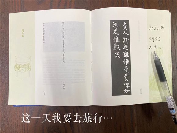 如果有兴致,不妨再拿起毛笔,临摹一下字帖,这一天不要感觉太好了啊!