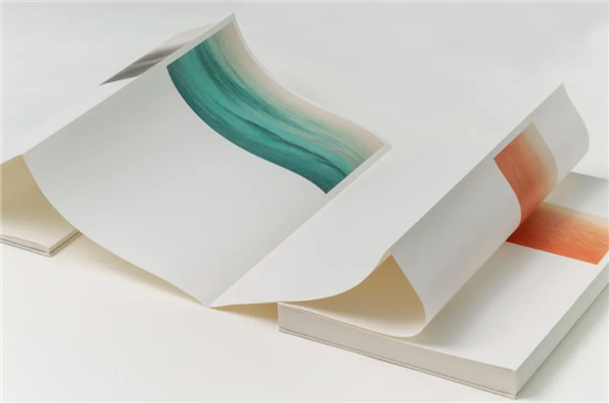 层层打开,作品信息和绘画作品被分成两册,互不干扰。其中,作品信息壹册为线装,专色印刷;绘画作品壹册为中国传统的经折装,希望通过这样的打开方式,可以让读者的视角变得更加多样与开放。