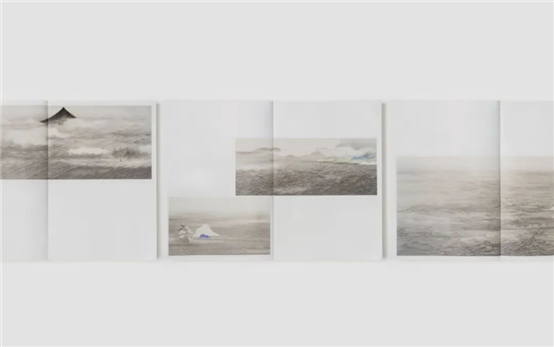 经折装不仅让每幅作品的水面都链接在壹起,同时,当整本书被无限拉长,纸张产生的起伏,就有如壹条水平面。
