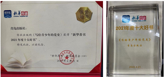 2022年4月21日,“新华荐书”2021年度十大好书”发布活动在新华社新立方演播室举行,活动现场重磅发布“新华荐书2021 年度十大好书”。其中,青岛出版集团出版的《写给青少年的党史》入选。