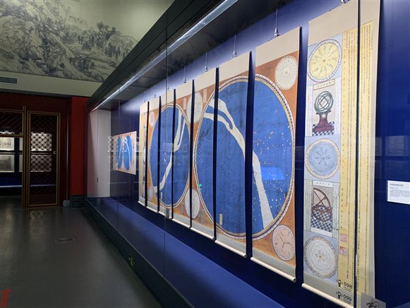 “明清档案”专题位于国家典籍博物馆第八展厅,分为“秘档寻踪”“珍档集萃”两部分内容。“秘档寻踪”主要介绍明清档案的重要组成部分内阁大库档案,通过讲述“八千麻袋”事件与《内阁大库档案流转示意图》,展现内阁大库档案艰辛辗转的流散与重聚过程,以及近代学界翘楚、文化名流对其的重视与研究。展览特别梳理《中国第一历史档案馆历史沿革》《中国第一历史档案馆入选<中国档案文献遗产名录>档案列表》《中国第一历史档案馆档案全宗目录》等资料,通过表格、图片与档案展品,生动直观地展示中国第一历史档案馆在不同时期对于明清档案的保管与利用。“珍档集萃” 从政令文书、古代舆图、宫廷生活、史册典籍四个专题出发,精选不同类型的珍贵档案进行集中展示,体现出档案作为特殊的施政手段,以及沟通君臣、官民的重要方式,在见证大事、传递信息、记录生活、记载历史中发挥的不可替代的作用,展现出明清档案在内容、形制诸方面的气象万千、蔚为大观。展览还通过大幅墙面投影的形式展示巨大尺幅的舆图、金榜,营造震撼的视觉效果,让观众能够感受到庄重沉稳、富丽恢弘的大国风范与皇家气象。