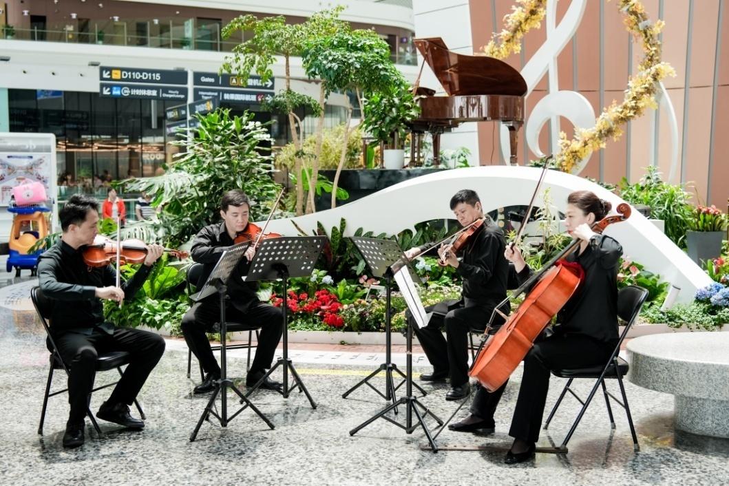 本次音乐会邀请北京交响乐团的演奏家们于26日全天在大兴机场倾情演出,演出还创新运用“主分会场联合演绎”的形式,以给更多旅客带来更丰富的视听体验。位于航站楼二层混流区儿童花园的主会场演出《G大调弦乐小夜曲——第一乐章》《爱的致意》《多瑙河之波圆舞曲》《匈牙利舞曲第五号》《自由探戈》《梁祝——化蝶》《太阳出来喜洋洋》《我爱你中国》《情深谊长》《我和我的祖国》等近二十首中外经典乐曲,为机场旅客带来一场音乐的视听盛宴。位于航站楼二层混流区音乐花园的分会场以“快闪”形式演奏其中部分曲目。不同时期的经典作品代表了各个时代的文艺风采,凝结着每个时代人们的美好记忆,这三场意想不到的音乐会,吸引旅客们纷纷驻足欣赏,共享音乐之美。一名旅客情不自禁地说,“这不期而遇的音乐会,熟悉的旋律,瞬间让心情更美秒,让旅途更精彩了。”音乐会在首图-云课堂直播间、快手、哔哩哔哩、新浪微博等平台同步直播,共计吸引6.4万观众线上聆听。