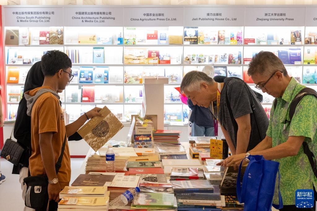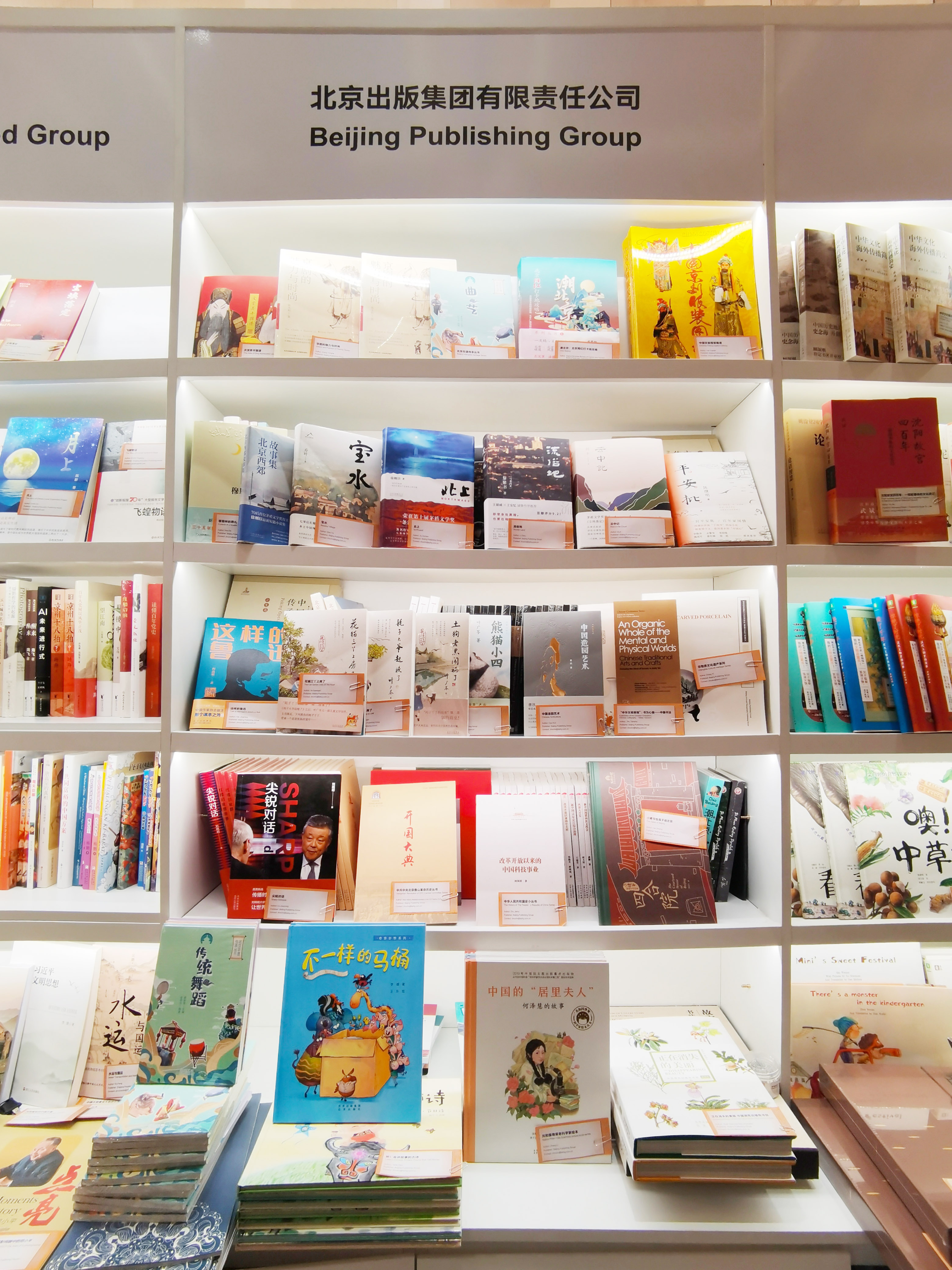 书展现场,北京出版集团展陈近50种图书,包括“中共中央北京香山革命历史丛书”“中华人民共和国史小丛书”等重点主题出版物,“大家小书”系列、《流俗地》、《平安批》、《熊猫小四》、《国韵承传——中国京剧传承人大讲坛》等精品力作,以及《尖锐对话》、“小姥爷给孩子说北京”、“牛津英语话中国——新时代英语教程(阅读篇)”等中英双语读物,突出展示了集团聚焦主题主线,打造出版精品力作的丰硕成果。品种丰富的图书吸引各国读者、友商频频驻足,开展业务洽谈。