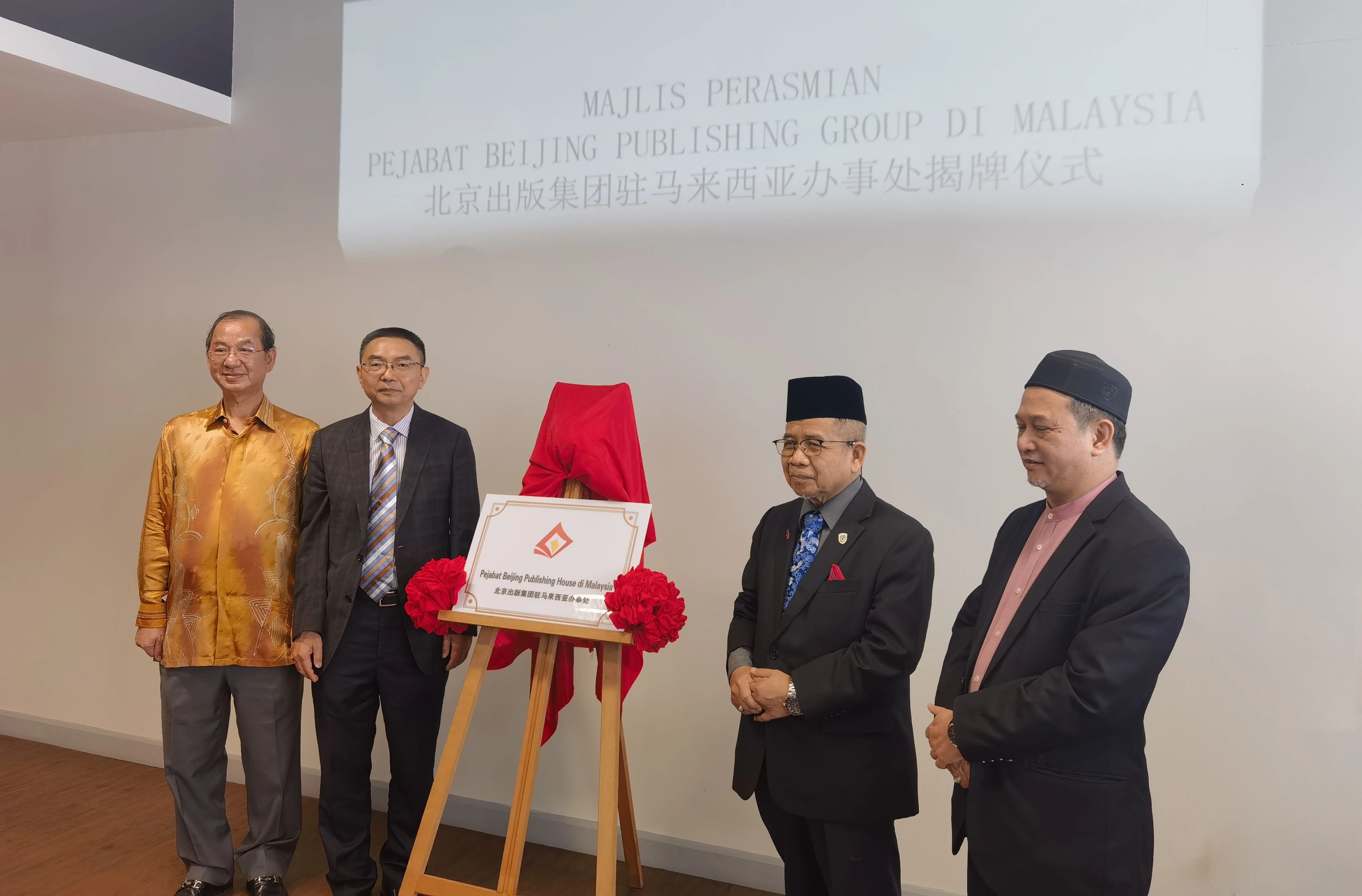 5月26日上午,集团与马来西亚汉文化中心在马来西亚国家语文出版局(马来西亚语言与文学规划及发展署)举办了中马出版高层交流会。马来西亚教育部国家语文出版局董事会主席拿督斯里阿旺·沙利延,马来西亚汉文化中心主席拿督吴恒灿,集团党委副书记、董事、总经理吴文学共同出席,三方领导聚焦中马出版合作发表精彩演讲。随后,与会领导共同为“北京出版集团驻马来西亚办事处”正式揭牌。集团驻马来西亚办事处设立在马来西亚国家语文出版局,标志着集团在马来西亚的业务发展进入了一个里程碑式的新阶段。这是集团继2022年与马来西亚汉文化中心建立战略合作后的重要成果,今后集团与马来西亚出版界将在版权贸易、文化交流、人员往来、项目合作等方面进行全方面深度合作。