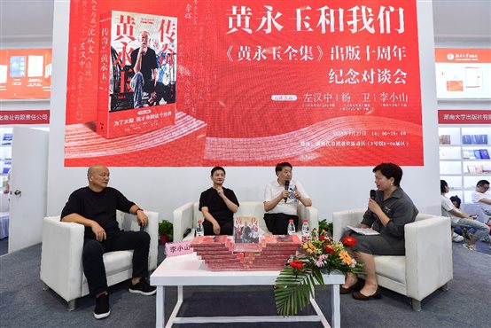 湖南美术出版社原社长、《黄永玉全集》主编李小山在对谈中回顾了湖南省委宣传部、湖南出版投资控股集团对全集的支持与重视,为集中力量编撰此全集,湖南美术出版社从资金、编辑力量等各方面全力配合情况,和全集出版的深远意义与影响力。湖南美术出版社资深编审、《黄永玉全集》执行主编左汉中在对谈中回顾了湖南美术出版社与黄老先生先生的长达半个世纪的友谊,并与李小山先生和杨卫先生一起畅谈了全集编辑过程中的趣事,还分享了自己在和黄老几十年接触中他眼中真实的黄老形象和自己对黄老的理解。中国美术批评家年会秘书长、《黄永玉全集》编委杨卫在对谈中回顾了全集编撰的启动过程与自己对黄老先生的艺术成就和社会影响的理解。在活动最后的赠书仪式上,湖南美术出版社向山东省图书馆、济南市图书馆、山东工艺美术学院图书馆和山东艺术学院图书馆分别赠送了《黄永玉全集》文学编及《传奇黄永玉(特别纪念版)》。
