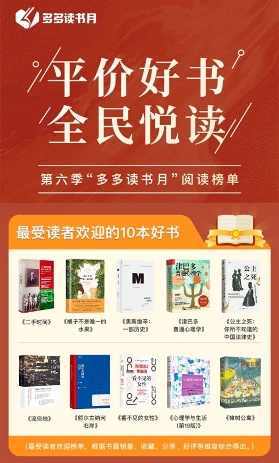 10月26日,为期一个月的大型知识普惠活动“多多读书月”收官,热销图书榜单新鲜出炉。