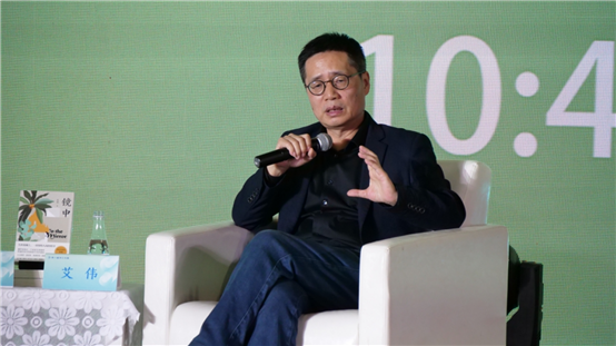 建筑学专业出身的艾伟,分享了在作品中如何将建筑学与文学相融:“在早年建筑是模仿天地的事物,是人类对世界的认识。建筑是有对称性的,镜子更是一个对称的结构;《镜中》有四部,每部都是十二章,有四个人物,故事发生在四个国家,也是一个对称的结构。可以把《镜中》想象成在四个房间发生的故事,早上阳光照进第一个房间,我们看到了某种景象;然后光照到了第二个房间,这里的景象这既是对第一个房间景象的补充,也是对第一个房间景象的颠覆;等到光照到了第三个房间,故事又是上一个房间的延续,是对前两种景象的颠覆;到了第四个房间,真相大白,一切故事都展示出来了。这时我们发现前,三个房间的故事都是有所偏颇的,都在相互补充和应证。”艾伟随后补充道,建筑内部结构是相互依赖和否定的关系,有阴暗的一面就必定有光亮的一面,本身就是个迷宫。“建筑是人性的外衣,是理解人性的方式,我将这种特征用在了人物塑造上。人在世界上天生就没有安全感,所以需要物质意义上和精神意义上的避难所,即建筑和语言。建筑是我们的庇护所,镜子是我们内心世界的影像,《镜中》某种程度上就是我想构筑的语言的庇护所。