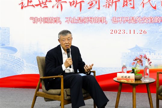 11月26日,中信出版集团联合北京发行集团特邀中国前驻英国大使刘晓明携新书《大使讲中国故事》和《尖锐对话》在北京图书大厦与读者见面交流。