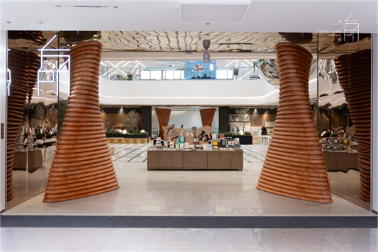 入口处无限符号的设计使用了100多平方米,30年以上的俄罗斯樟子松,通过手工匠人的反复打磨和精巧设计,表现出知识的大门无限敞开的愿景。
