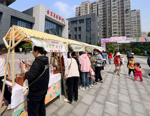 4月20日~21日,文化气息浓厚的春日游园会活动连续两天在馆外广场举办,共吸引1.2万人次参与,这也是徐州云龙区图书馆首次以独特的市集形式,创新地将阅读与传统文化相融合。现场,18个特色摊位涵盖了非遗手工、传统美食、图书漂流、精美文创等内容,读者在市集中收获了沉浸式、高质量的文化体验。