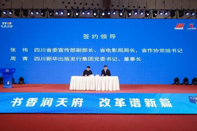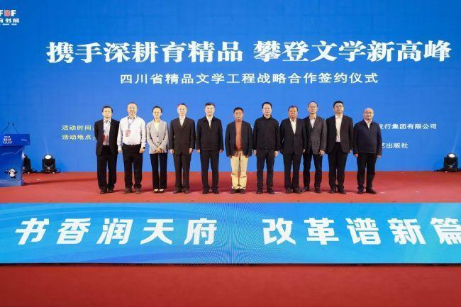 10月12日,2024天府书展期间,四川省作家协会与四川新华出版发行集团举行了“四川省精品文学工程战略合作协议”签约仪式。中国作协副主席、四川省作协主席阿来;中共四川省委宣传部副部长、省电影局局长,省作协党组书记张伟;四川新华出版发行集团党组书记、董事长周青;中共四川省委宣传部电影处处长张祯军;四川新华出版发行集团党委副书记、副董事长、总经理刘龙章;四川省作家协会党组副书记张颖;四川省作家协会党组副书记鲁娟;新华文轩出版传媒股份有限公司党委委员、总编辑王华光;新华文轩出版传媒股份有限公司党委委员、副总经理邹健;新华文轩出版传媒股份有限公司党委委员、副总经理胡巍;新华文轩出版传媒股份有限公司副总编辑雷华等参加签约仪式。