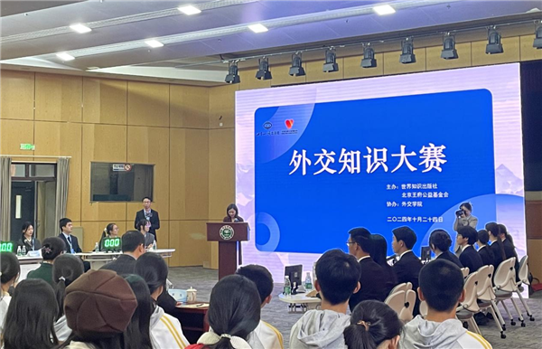 中国出版传媒商报讯 为促进外交知识进高校,助力国际关系学科建设和学术研究,世界知识出版社在《世界知识》杂志创刊暨社庆90周年之际,会同北京王府公益基金会等单位共同主办“外交知识大赛”。大赛初赛于9月21日举行,逾40所高校近1500名学生参赛。中国人民大学、外交学院、国际关系学院、山东大学、四川大学、云南大学6所高校入围决赛。10月24日,“外交知识大赛”决赛在外交学院成功举办。
