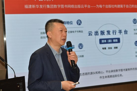 会上,厦门正观易知书业云科技有限公司总经理陈剑介绍了“云书馆”项目,他从云出版发行生态运行逻辑入手,对应用端产品——云书馆数智学习云平台的构成、特点等进行阐述,并将这一全新的数字图书模式与第三方进行对比,强调新模式下电子书版税制实现的可能性。