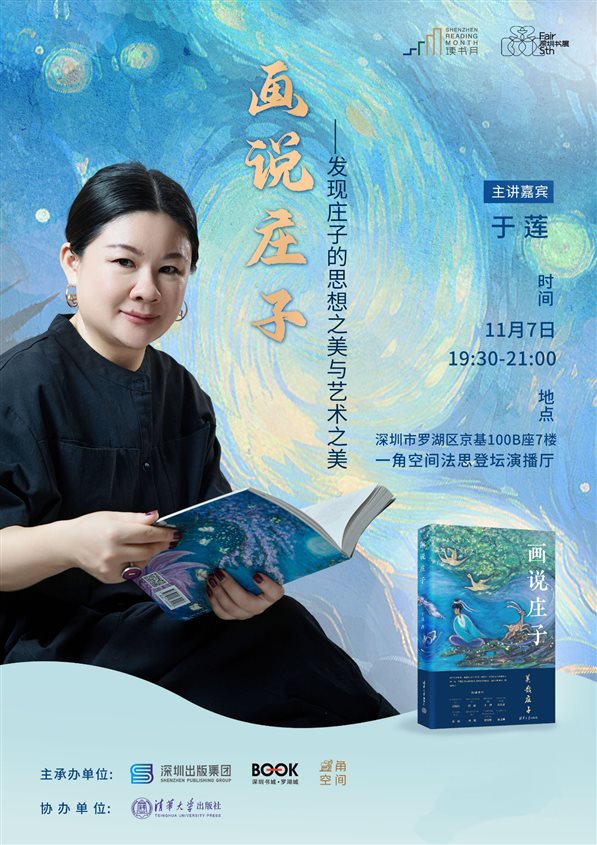 2023年11月7日晚,以“美哉庄子:发现庄子的思想之美与艺术之美”为主题,由艺术家于莲所著、清华大学出版社出版的《画说庄子》新书分享会,作为2023南国书香节暨第五届深圳书展的第一场活动,在深圳一角空间与读者进行了精彩的分享活动。